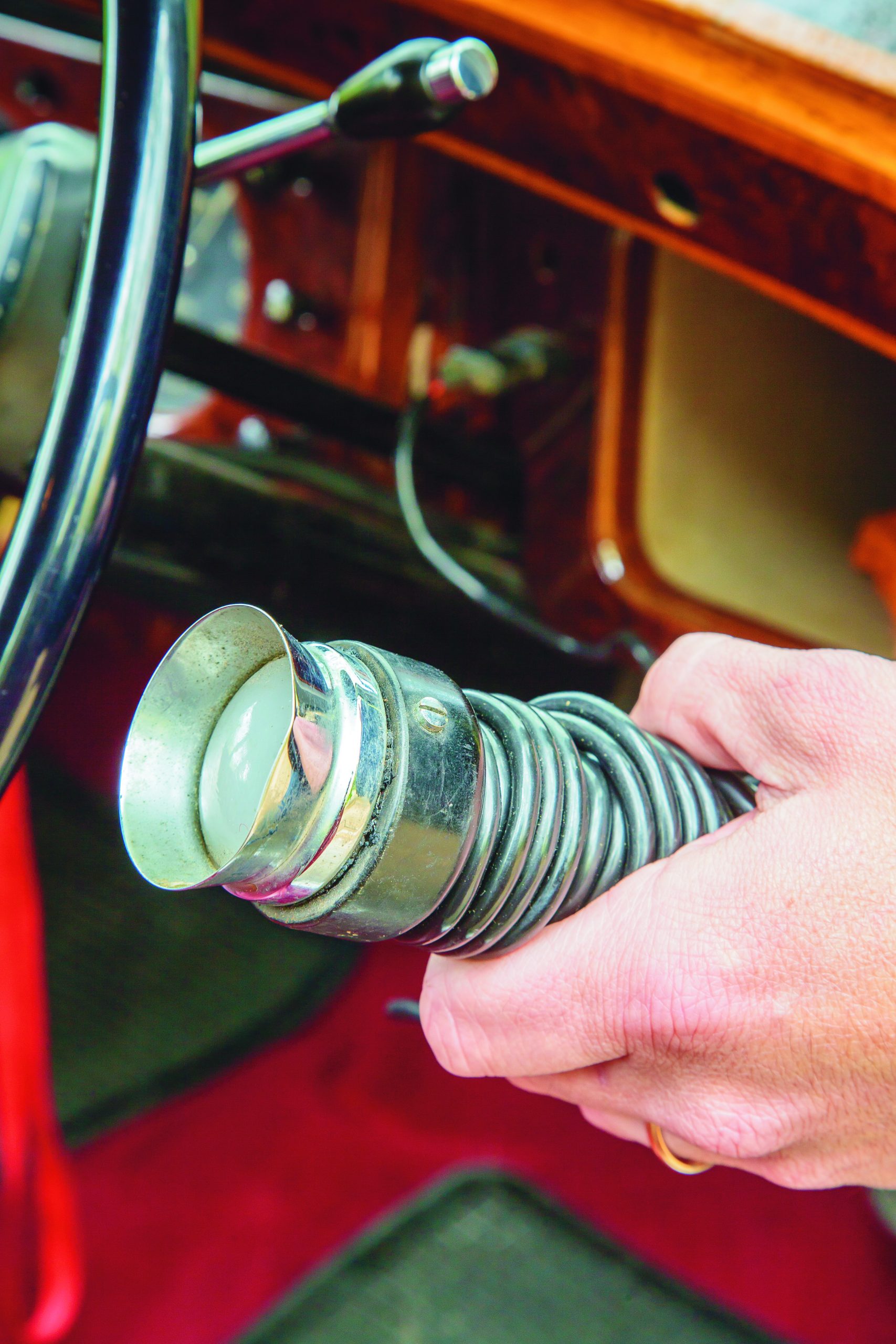 This car on display has a very interesting history, as it belonged to the House of Windsor. Note, not the same model but the actual car itself. You can notice the following detail: the 'Spirit of Ecstasy' (the name given to the emblem on the radiator) is not standing upright as usual, but with one knee on the ground and the head slightly bowed. This is because when a member of the Royal Family was inside, the emblem would turn backwards, as in the presence of royalty no one could stand with their back turned, but rather as the 'Spirit of Ecstasy' presented itself, as a sign of submission.In addition, it has a 'House of Windsor' emblem on the front and the respective identification on its chassis.